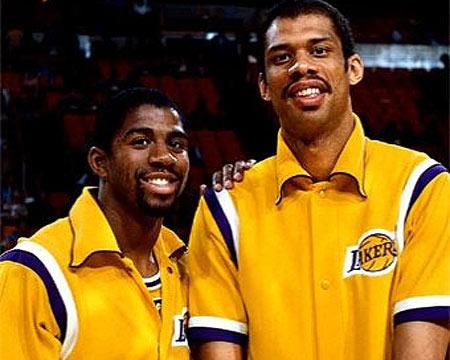 两个都是状元秀,两人都是一出道就是超级巨星,魔术师和贾巴尔一起打球10个赛季,8次进入总决赛,5次夺冠,非常高效强劲。两人除了总冠军荣誉满满,个人的数据和荣誉也非常多,贾巴尔是NBA历史第一得分王,NBA20赛季19次全明星的第一人。魔术师不仅数据华丽杰出,而且华丽控球和传球技术让球迷折服。两人一个是内线无敌的中锋,一个是外线无敌的组织后卫,搭配非常默契合理。